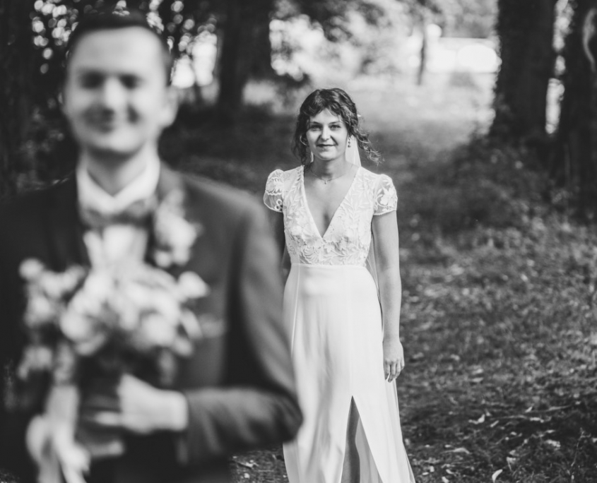 Le first look peut être réalisé sur le lieu des préparatifs ou bien à proximité, un petit coin de forêt ferai parfaitement l’affaire ! Vous pouvez être accompagnés de quelques proches pour cette rencontre mais, à mon sens, rien de tel que de savourer ce moment de complicité à deux.